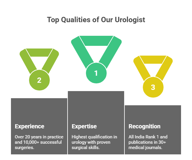 With the highest qualification in urology (M.Ch), patients receive care based on evidence, global guidelines, and proven surgical skills.